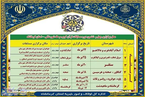 اعلام زمان‌بندی مسابقات سراسری قرآن در مرحله شهرستانی در کرمانشاه