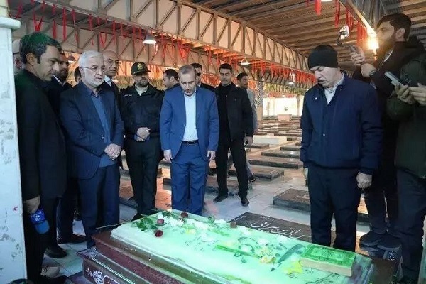عکس | ادای احترام وزیر کشور به شهدای کرمانشاه